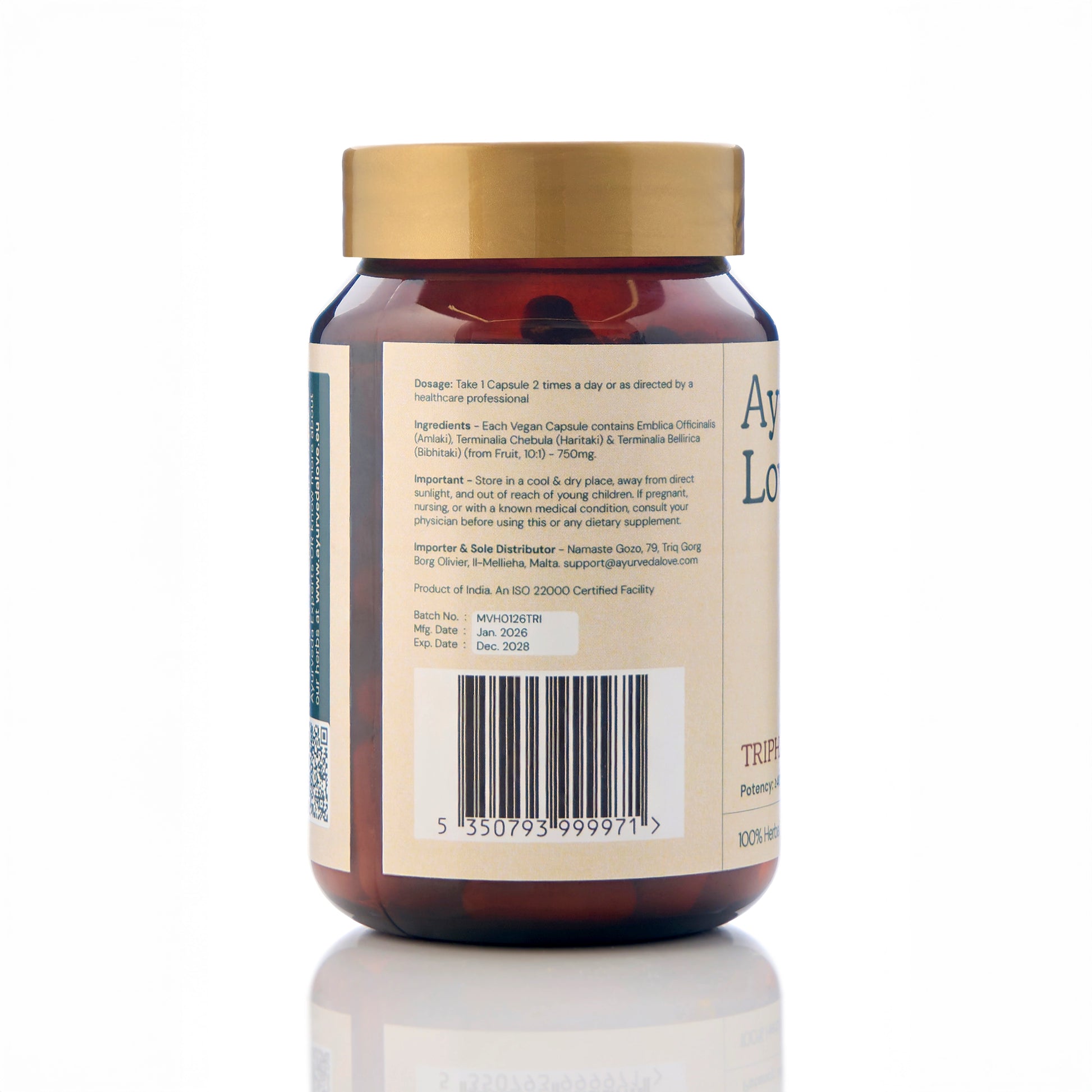Quality and safety: Available in capsule form as a carefully balanced blend of all three fruits for optimal synergistic benefits. Consult your qualified Ayurvedic practitioner or healthcare provider for appropriate dosage based on individual needs. Professional guidance is especially important if you have underlying health conditions or take medications.